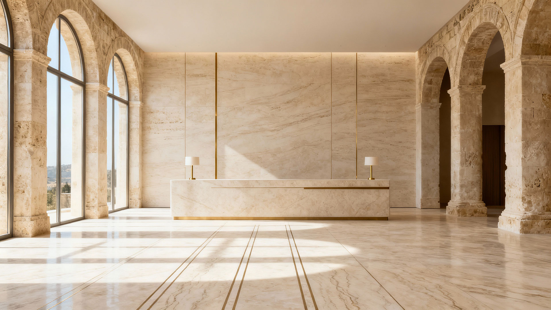 Architect-focused guide to specifying premium travertine for hotels and public spaces—grades, finishes, DCOF targets, modules, detailing—by Mr Travertine.